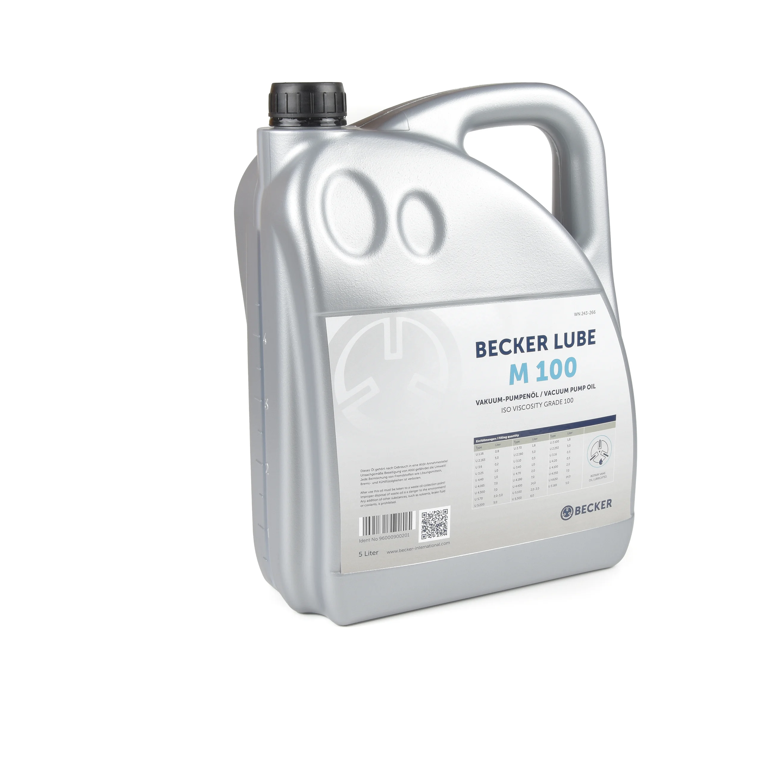 Becker Original Oil 96000900201 The container size is 5 L litre. To ensure proper function of your Becker pump, the oil has to be changed regularly according to the operation manual.