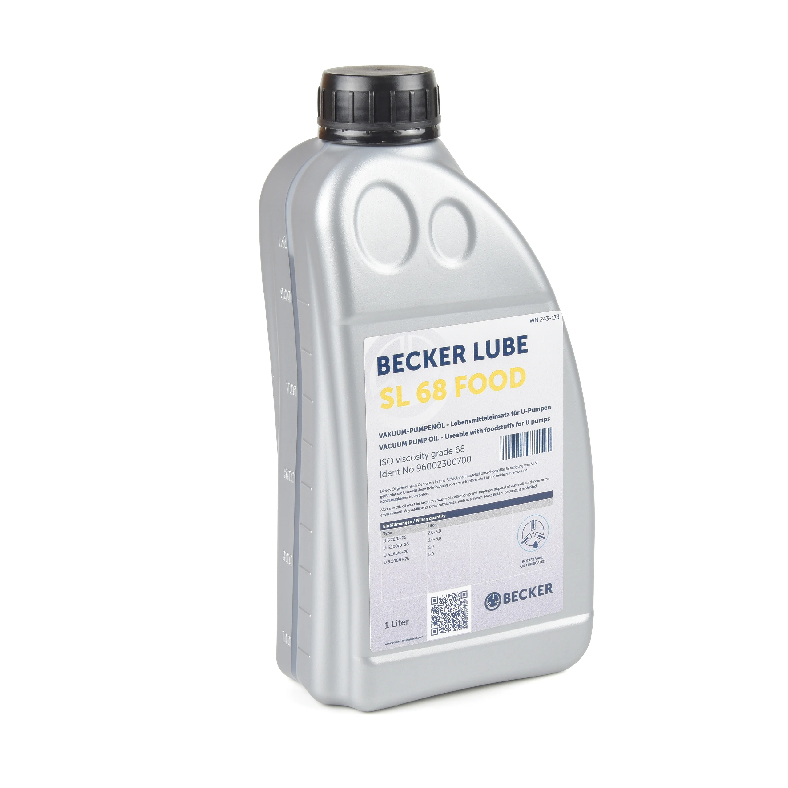 Becker Original Oil 96002300700 The container size is 1 L litre. To ensure proper function of your Becker pump, the oil has to be changed regularly according to the operation manual.