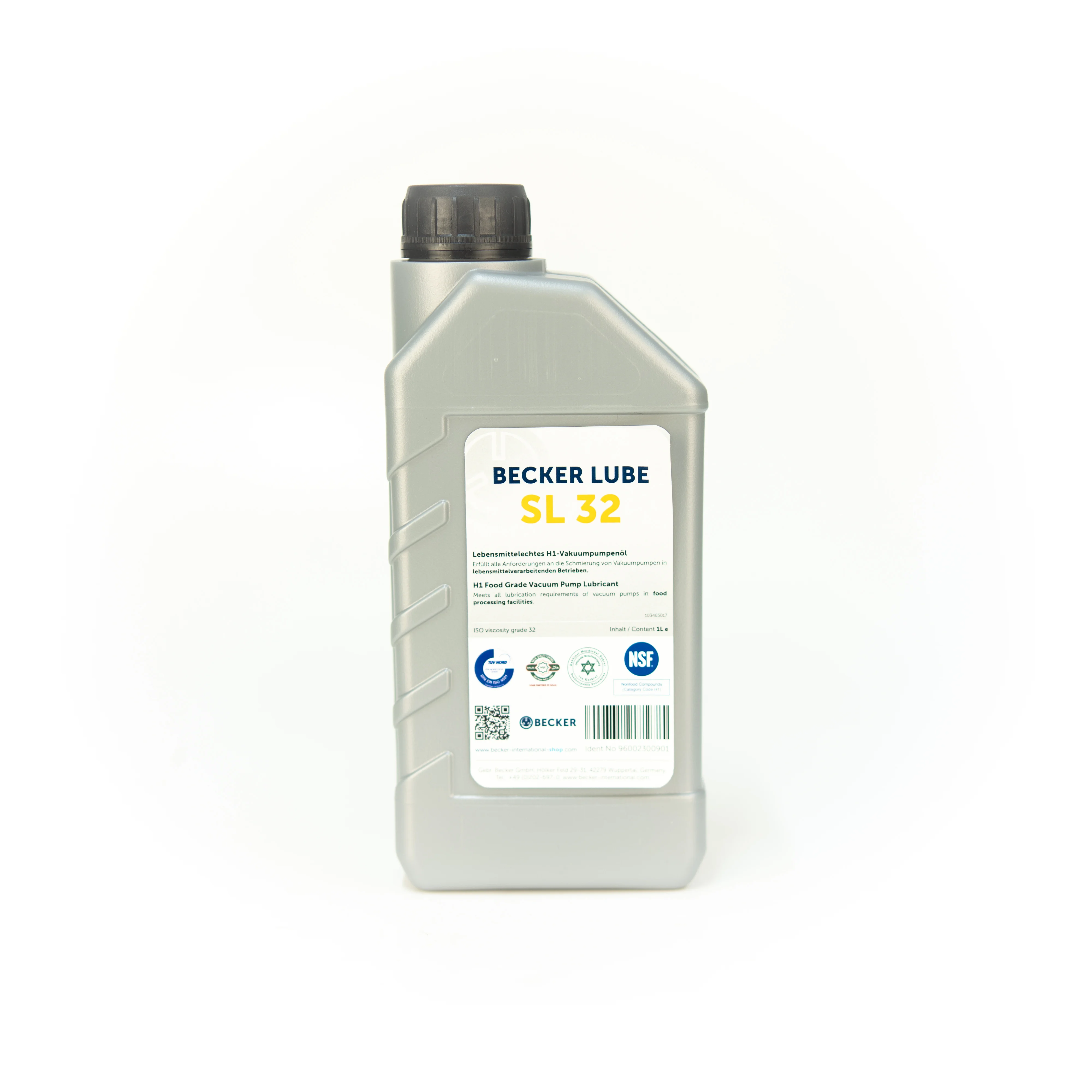 Becker Original Oil 96002300901 The container size is 1 L litre. To ensure proper function of your Becker pump, the oil has to be changed regularly according to the operation manual.