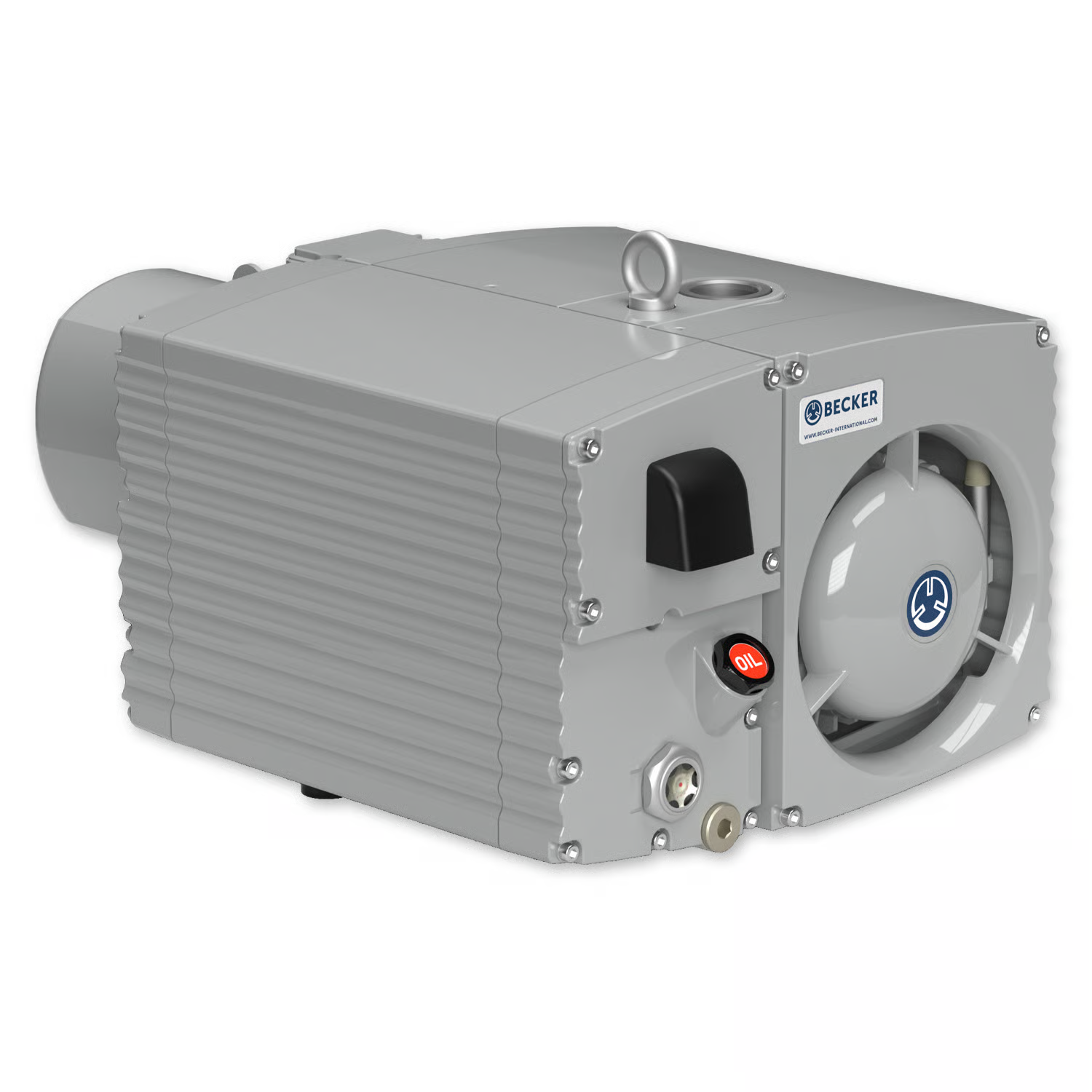 This Rotary vane, oil lubricated, type U5.101/0-00, is equipped with a 2.2 kW/2.2 kW motor. The maximal volume flow is 100/120 m³/h at 50/60 Hz. The maximum suction pressure is 0.1/0.1 mbar.